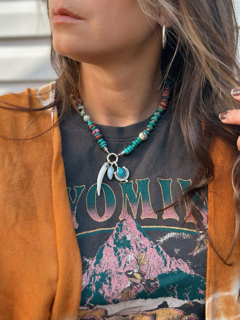 This charm includes the sterling silver beaded chain. Stone beaded necklace is not included but can be purchased separately.